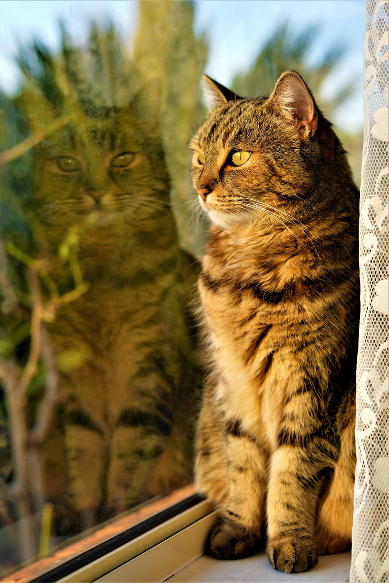 To get this kind of shot below, head outdoors just before the sun sets, on a day when those last rays of light are beautifully golden. Often you’ll get this kind of really intense golden light at the end of a hot summer day with no cloud cover, but you can definitely experience it in winter too. Position your pet with the golden light behind them, and use a wide aperture of around f/2.5 to create this incredible bokeh.