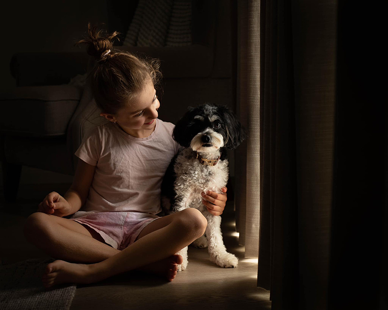 When shooting in a more dramatic, dark and moody light, meter for your pet’s face to make sure you get some detail in the shadows.